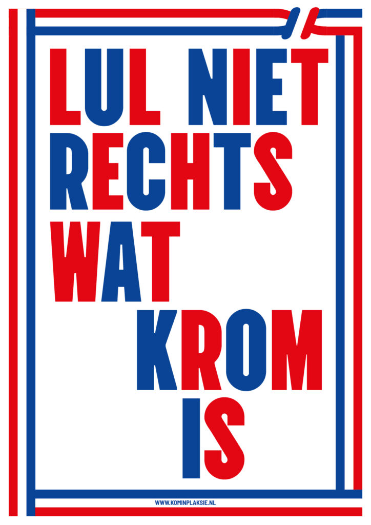 Weet je het beter? We horen het graag! Mail je leus naar kominplaksie@gmail.com Wie weet zie jij je tekst of beeld terug op een poster.